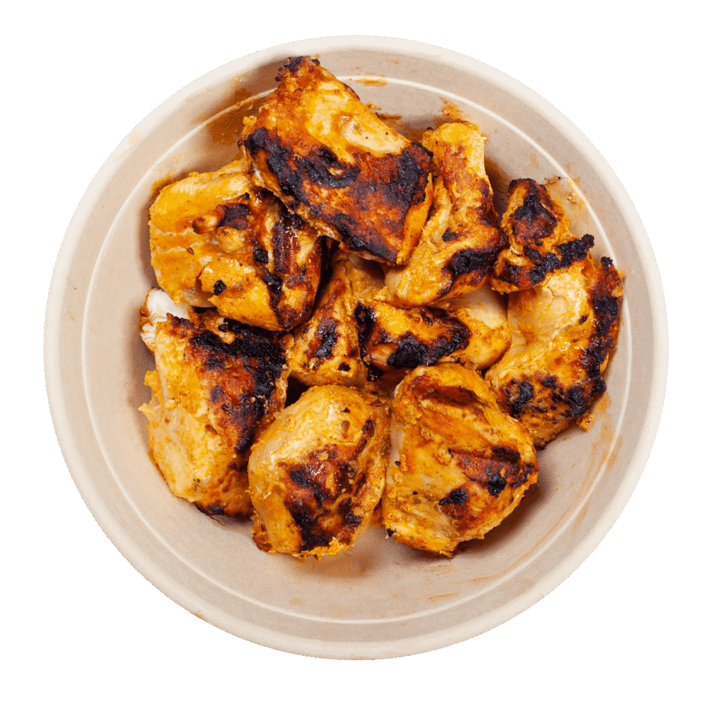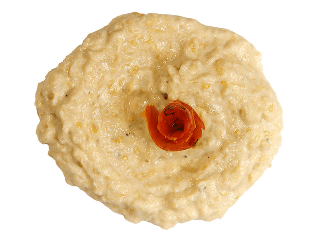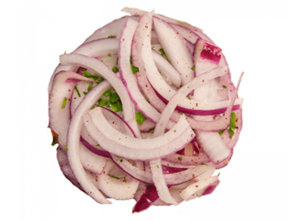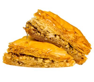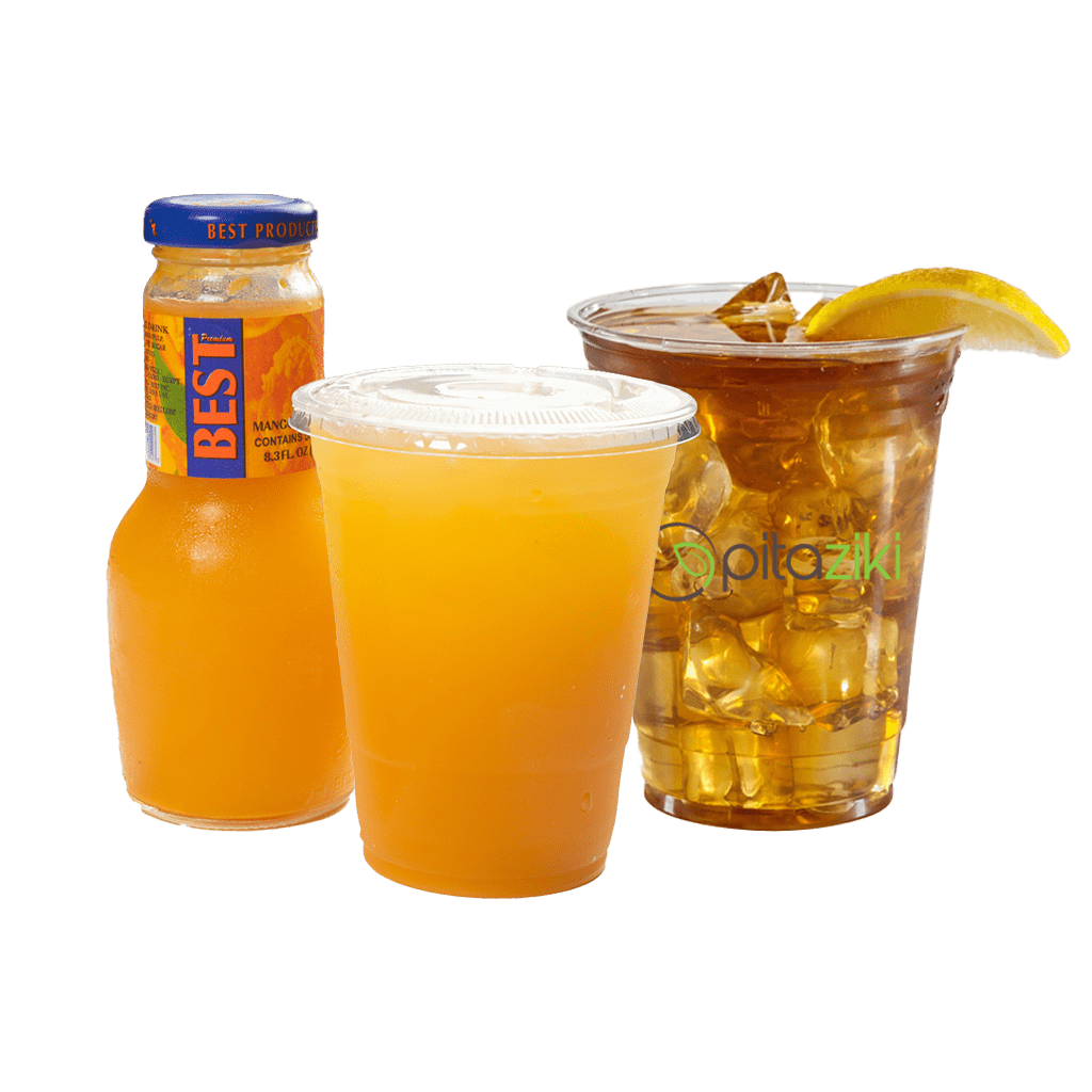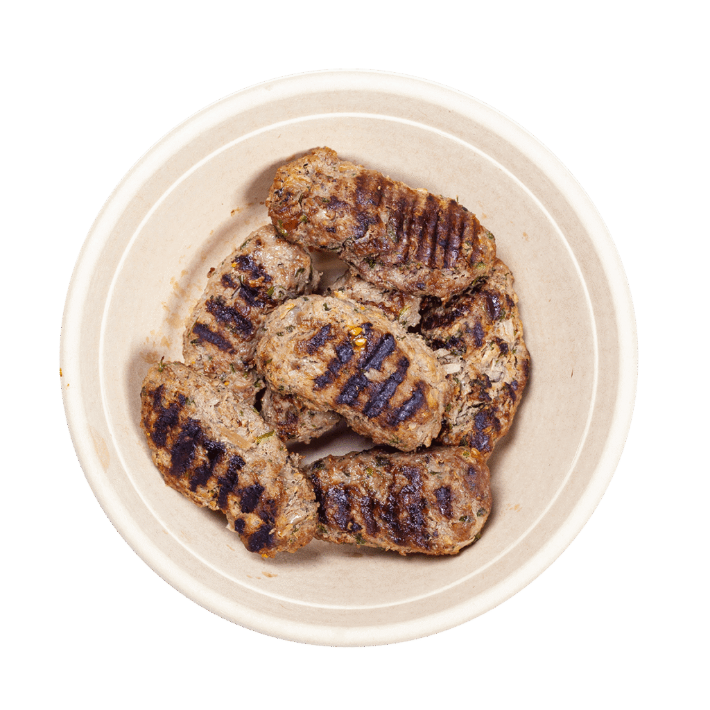 A combination of falafel and shawarma topped with creamy garlic, hummus, pickles, lettuce and tahini sauce.